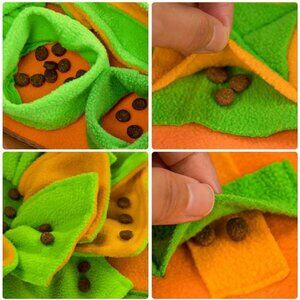🧿【Safe & Unique Design】: The Dog Feeding Mat is made of high-quality fabric with thick artificial grass blades, durable and pet-friendly. Petals and grass are sewn on the mat with thick cotton thread. We set up 4 additional feeding games for smart and experienced dogs! And there is a BB device in the middle to arouse your cute dogs to play. Some dogs even enjoy laying on the material after they’ve found all of the hidden food.