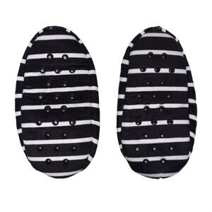 Snuggle Toes Nightmare Before Christmas Jack Skellington Slipper Socks, S/M, NWT. Cozy up your feet with these slipper socks. These black socks feature a striped pattern with Jack Skellington's face at the front for a fun look. Showcasing a soft faux fur construction, these lightweight socks have a closed, round toe and a pull on style for easy on/off. Bottoms have no slip grips or nubs for safety on hardwood or tile floors. New with tags. Size Small/Medium typically fits women's shoe sizes 5-7.
