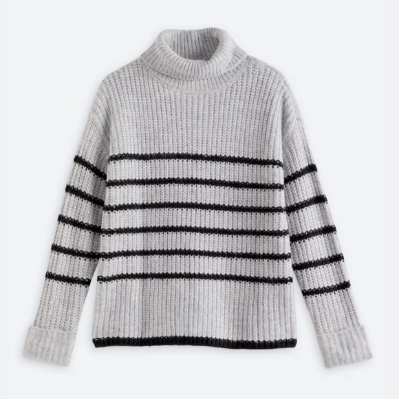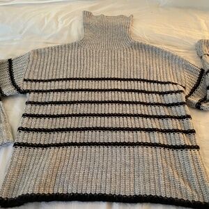 Wrap yourself in comfort with this soft and cozy turtleneck from Love Ellie, size Large. The classic gray with subtle black stripes pairs effortlessly with denim or leggings for an elevated casual look. Perfect for chilly mornings, weekend lounging, or layering up in style.