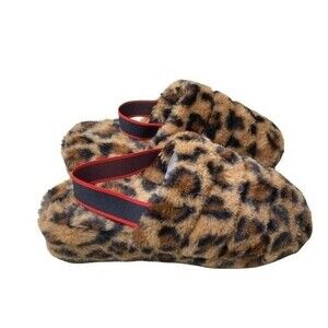 Snuggles Leopard Platform Slippers. Size 10. Brand New with box. Black and red elastic slingback strap. Clog style. Closed toe.
