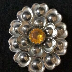 Awesome vintage silver tone and golden bead brooch