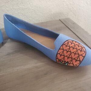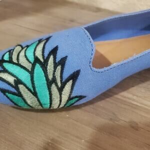So Authentic Pineapple Flats Womens Size 9 Blue Canvas Slip On Embroidered Fruit