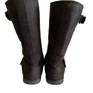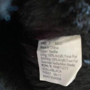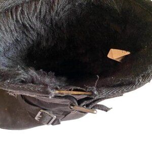 So Black Boots, manmade materials, with buckles and faux fur. Womens Size 7. Approximate height 11.5 inches. Some damage on top of boots as shown photos - reflected in price reduction.