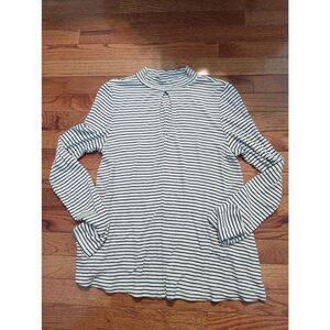 So Black and White Striped Long Sleeve Keyhole Front Top Size Small
