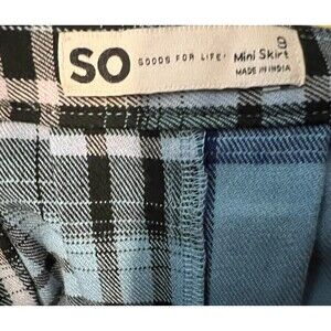 So... Blue Plaid Pleated Mid Thigh Mini Skirt Sz 9 NWOT High Waist Punk Y2K