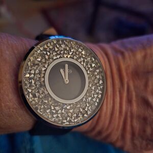 Outer Dial Filled with Silver Crystal Studs, and Silver Tone Accents