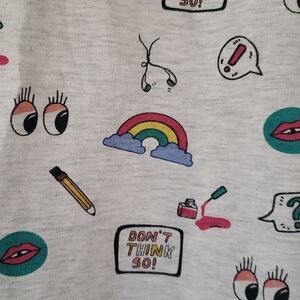 Rainbows - ear buds - fingernail polish - pencils - eyes - lips - "Don't think so" colorful graphics