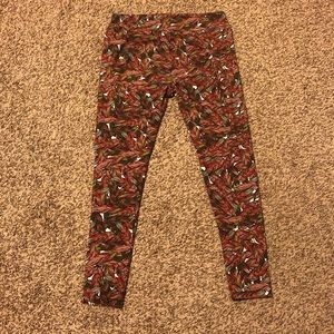 Add these fashionably feathery leggings to your wardrobe today! The unique feather print is on super soft and stretchy fabric with cool colors. Lularoe tall n curvy fits sizes 12-18. Inseam: about 27 in. Waist laid flat: about 16 in