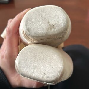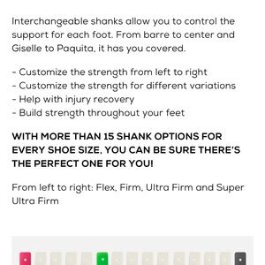 These So Danca Balket Pointe Shoes are like new. My daughter wore them twice, but they were no match for her beloved Suffolk’s. These are similar to Gaynor Minden’s, as they have a very durable and have a very long lifespan. They also include special Electra Technology which increases their durability and helps with injury prevention. Additionally, dancers can switch out the shanks based on their firmness preference. These have a green shank (firm), but others are available through SoDanca.