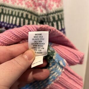 So Fair Isle Cardigan Ski Sweater Large Juniors Zip Front Pink Colorful Y2k