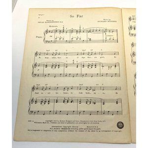 So Far Piano Sheet Music From Allegro Musical Play 1947 Rodgers and Hammerstein