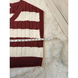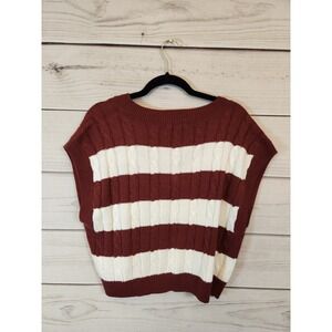 So Goods For Life Women Burgundy Cream Stripe V-Neck Cropped Vest Sweater Size L