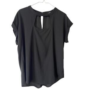 So Goods For Life Womens L Chic Simple Sheer Blouse Black Cutout Office Business