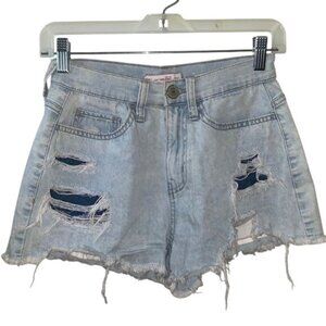 So High Rise Curvy Mom Shorts 1/25W Light Wash Distressed Denim