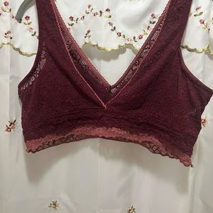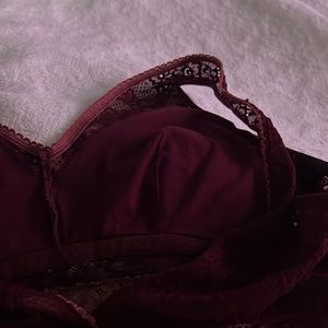 Lined cups. Nylon and spandex. Excellent condition. Beautiful sports type bra in burgundy and made for comfort. XL