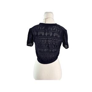 So It Is Size Medium Knitted Crotchet Bolero Shrug Short Sleeve (Navy Blue)