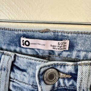 So Jeans Womens Blue Super High Rise Wide Leg Pants 5/27 Distressed 90s