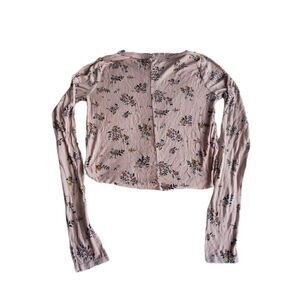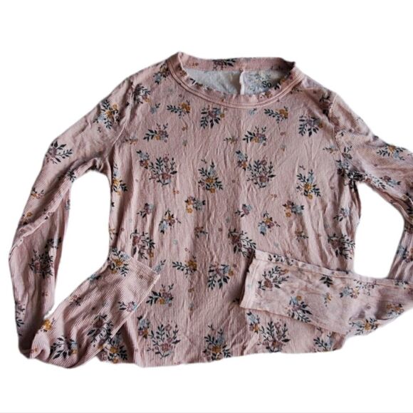 So Juniors Cropped Floral Ribbed Long Sleeve Top XS
