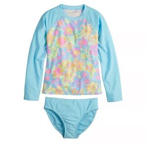 So Light Blue Floral Rashguard 2 Piece Swimsuit Set Size 12 Girls NWT