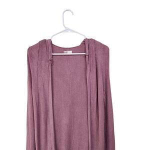 So Long Sleeve Open Front Long Cardigan Mauve Pink Hooded Side Slit Size Small.