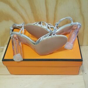 So Me Clear Acrylic Chunky Heel Sandal Wmn's size 7