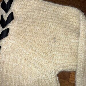 So Me Cream Sweater with Black Ribbon Detail | Women’s Medium | Soft Knit Lace-U