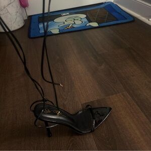 Chic and glossy black heels by So Me. Sleek design with a pointed toe.