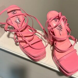 Elevate your style with So Me's striking pink platform sandals, featuring an intricate strappy design that wraps elegantly around the foot. These platforms offer a substantial sole for added height, making them perfect for special occasions or a chic summer look. Crafted with a smooth, leather-like texture, these sandals combine modern aesthetics with comfort, ensuring you stand out in any crowd.