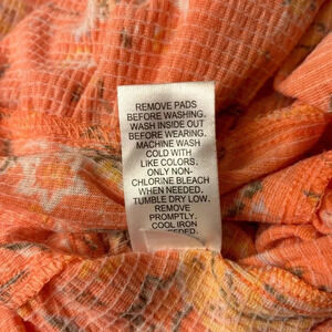 “So” Mini Sundress Size XS Coral/Peach and floral design. Adjustable straps with padded top with upper. Ruffle bottom.