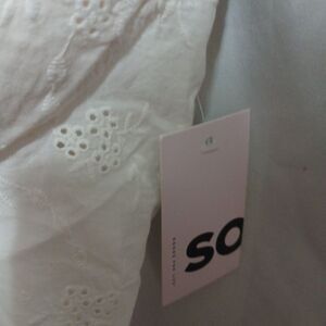 The So New Heirloom White crop Cami in size L is a stylish and elegant tank top designed for women. With a sleeveless design and camisole style, this top offers a chic and comfortable option for any wardrobe. The white color adds a clean and crisp look, perfect for pairing with a variety of bottoms for a trendy and sophisticated ensemble. Made by the brand SO, this top is sure to be a versatile and timeless piece in any woman's clothing collection.
