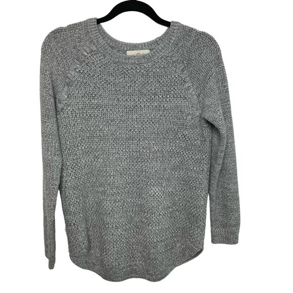 So Perfect Long Sleeve Crew Neck Curved Hem Ribbed Knit Pullover Sweater Gray L