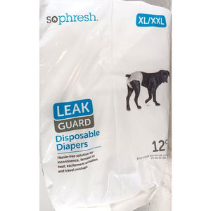 Keep your furry friend clean and comfortable with these So Phresh disposable dog diapers. Designed for XXL adult female dogs, these cotton diapers feature a white color and come in a pack of 12 units. Perfect for protecting your floors and furniture from any accidents, these diapers are a must-have for any pet owner. Made in China, these pet diapers are easy to use and dispose of, making them a convenient solution for dog owners on the go.
