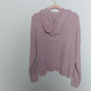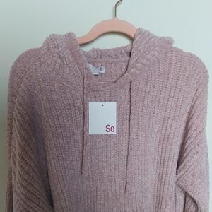 So Pink Chenille chunky knit Cozy Soft Long Sleeve Hoodie hooded cropped Sweatshirt top with drawstring hood