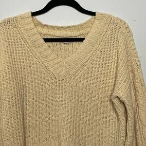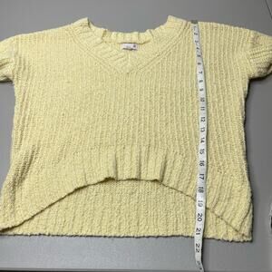 So Pullover Sweater Cable Knit Hi-Low Cropped Long Sleeve Butter Yellow Junior M