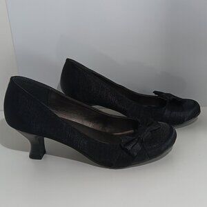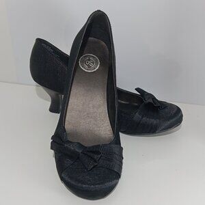 So Shelby Round Toe Black Heels with Bow Detail, size 8.5
