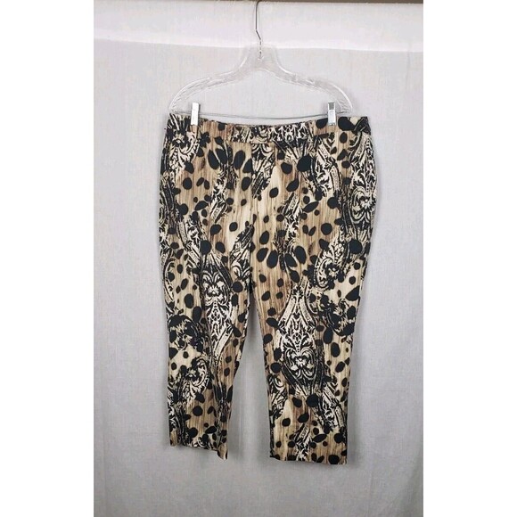 So Slimming by Chico's Animal Geo Print Crop Capri Pants Large 3 Mob Wife Safari