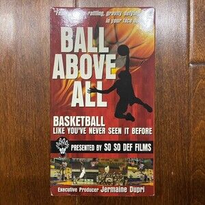 Relive the 2001 So So Def Ball Above All Basketball Streetball Mixtape with this VHS Tape featuring the best basketball players from Los Angeles, Chicago, and Houston. Experience the game up close with an objective look at the impressive skills of these talented athletes.