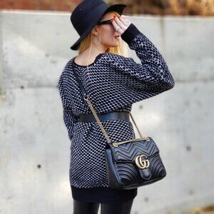 I love this black and white Super-soft textured sweater with sexy plunging v-neckline and comfy loose silhouette.