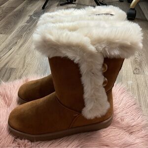 So Sophia Faux Fur Brown Boots Size 9.5