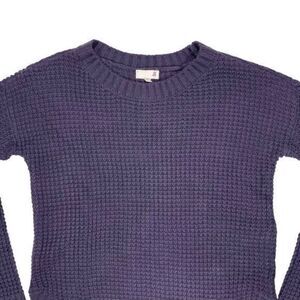 - Description: So Waffle Knit Sweater Womens Sz X-Small Purple Long Sleeve Crew Neck Pull Over