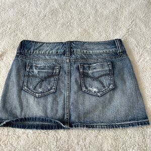 So Wear It Declare It Low Rise Blue Denim Mini Skirt Sz7 Embroidered Retro 2000s