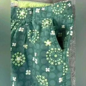 So Women's 11 Green Floral Chino Shorts Cuffed Casual Cotton Geometric Print