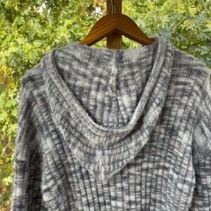 So Women's Blue Grey Spacedye Hooded Cropped Sweater Size M. NEW