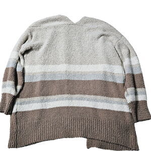 Stay cozy and stylish with the So Womens Sweater. This multicolor, large-sized sweater features a soft, striped pattern, long sleeves, and convenient open pockets. Made from 100% polyester.