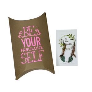 Carefully packaged and shipped to you on a card and in a pillow box. Ready to gift or keep for yourself!
