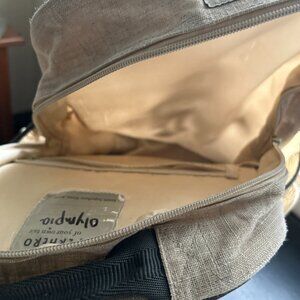 This is a "first backpack" for preschoolers not needing to carry books. The sublime linen/cotton fabric is oddly durable and washable--I didn't tumble dry it but it stood up to a few washings for sure. Side pockets on both sides and zipper pouch inside. Chest strap across shoulder straps! I love this and the only reason to let it go is that kids grow and ours now has to carry books back and forth as well as a lunch, so we sized out of this.