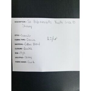 So Youth's Size 10 Skinny Denim Bib Overalls