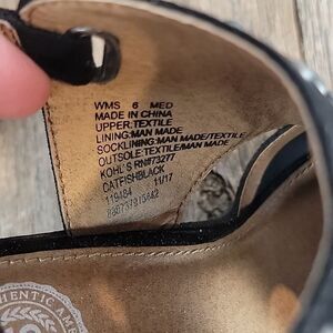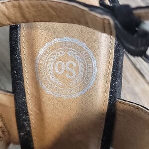 Man made black suede uppers in these sandals by So with a 3" block heel, slingback buckle strap, and an almond shape peep toe. Great pre-owned condition.