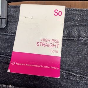 So high rise straight distressed raw hem jean black wash denim size 13 / 31W