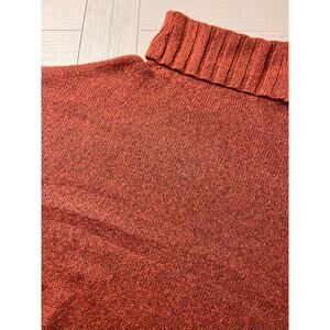 So ladies cropped boxy turtleneck poly sweater w/ flare sleeves. Rust, cream XL